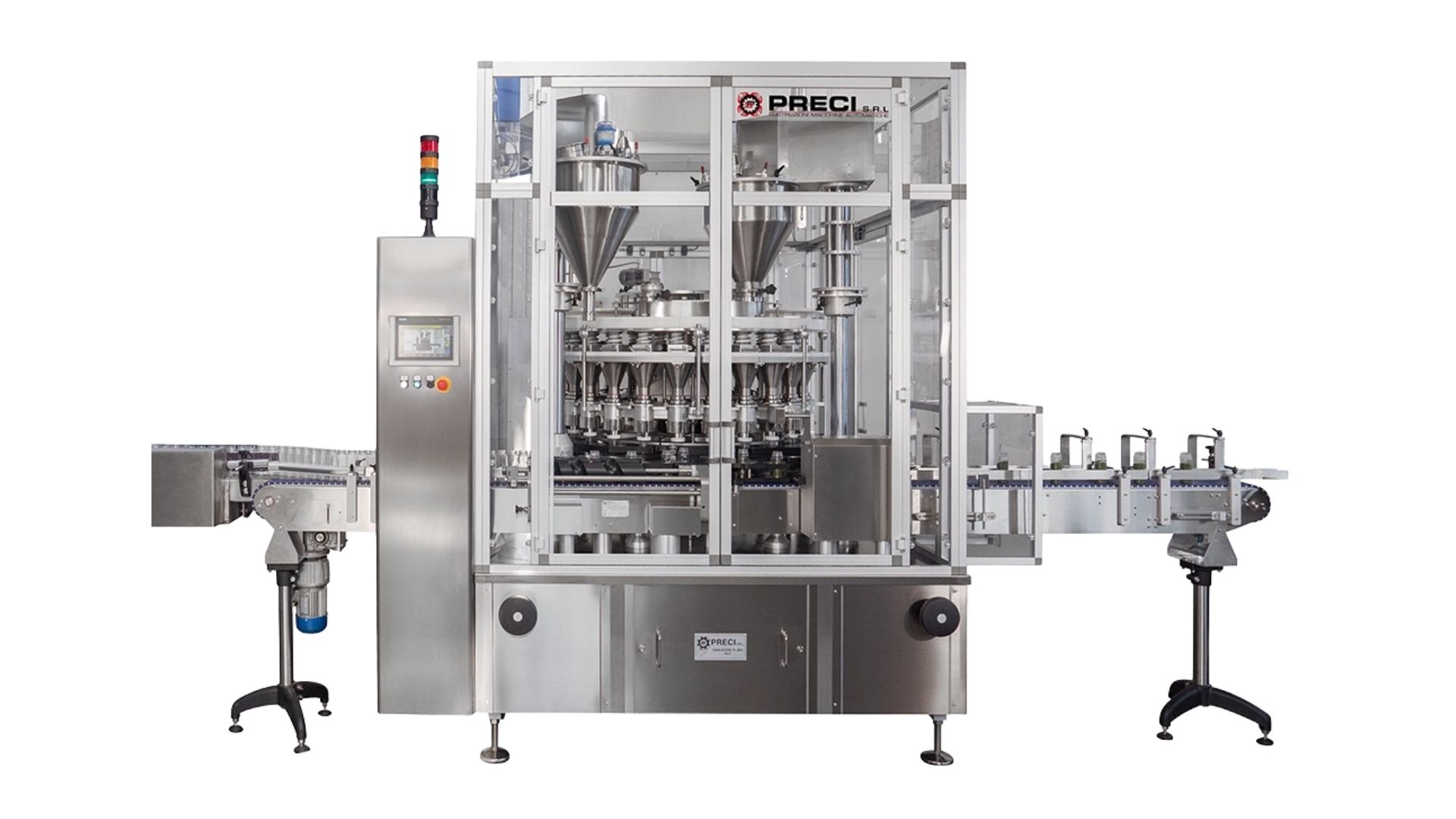 Thanks to the different available configurations, ATOLLO can be used as a standalone solution or as an integrated monoblock with a capping turret, becoming a compact line for filling and closing powders and granules.