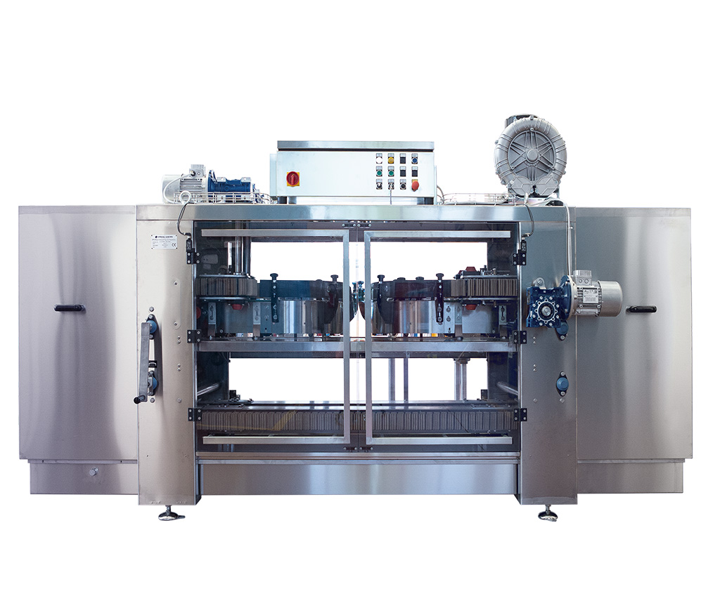 Machine pour le nettoyage des récipients vides avec plusieurs traitements disponibles (air – vapeur – eau) selon les exigences du client.