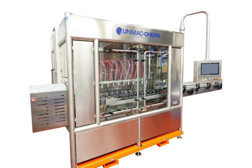 Machines pour le remplissage de prosuits denses et semidenses: concentré de tomate, sauces même avec des morceaux de viande ou légumes, mayonnaise, ketchup, condiments, confiture, crèmes à étaler, miel, aliments pour les bébés.